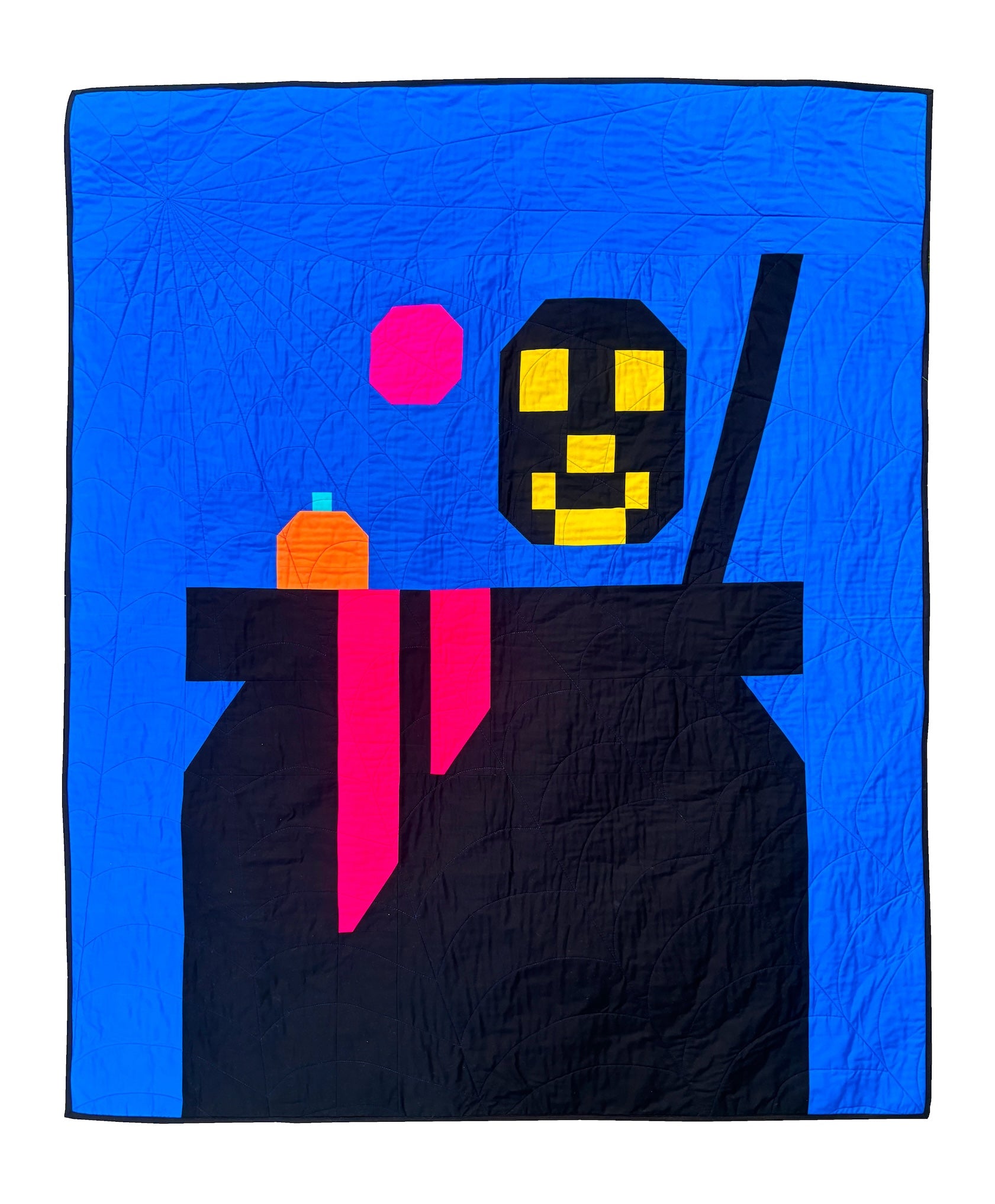 Your giant cauldron is here! Introducing the Bubbly Bliss quilt pattern, a fun addition to your Halloween decoration, ready to take in all the weird and wonderful magic portions. The Bubbly Bliss quilt pattern is made up of large blocks which makes the quilt come together in the blink of an eye.