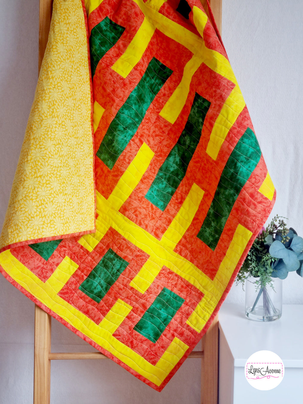 Tracking Along is a fun fast finish quilt pattern perfect for beginners or a quick project for the experienced. It is a pattern that is great for displaying your favourite prints or to showcase those lovely fussy cut pieces.